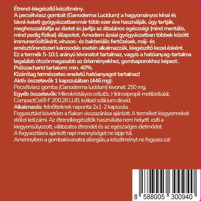 Figyelmeztetés: Fogyasztást követően a flakon visszazárása ajánlott. A terméket kisgyermekek elől el kell zárni. A fogyasztásra ajánlott napi mennyiséget ne lépd túl. Amennyiben allergiás vagy a gombakivonatra, a készítményt ne fogyaszd! A táplálékkiegészítő használata nem helyettesíti a változatos, egészséges étrendet és a rendszeres testmozgást. Az eredmények egyénenként eltérőek lehetnek, és nem garantáltak.